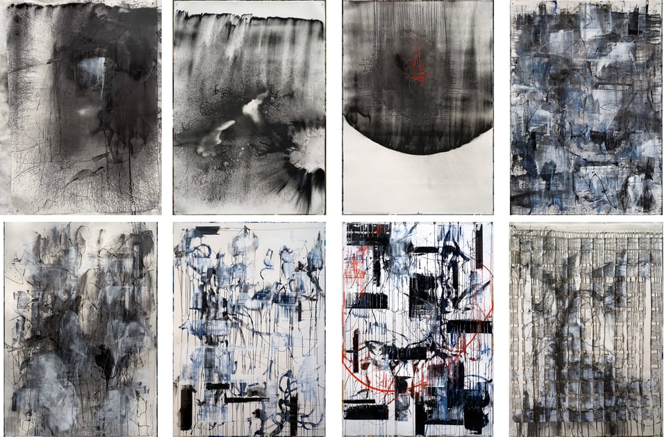 Looking back at my work in 2023, I was surprised by the pattern of the 29 works done on linen and paper. Since about 2019, I’ve been trying to make pictures that give shape to the feeling of our moment, while still making use of the habits that have become integral over the course of my career. When the more arbitrary abstractions and interventions in the Dispersions (Covid-19) and Deluge series first appeared, I was a bit baffled — even distressed — by them. I am now learning to trust those forms and instincts. This year I brought those to a new scale, and a number of the drawings executed in powdered charcoal are quite large (187 cm, or just over 6 feet high).