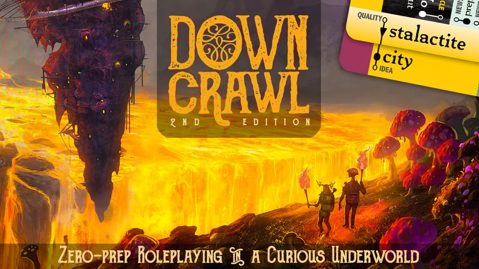 Downcrawl is roleplaying toolkit consisting of a 160-page rulebook and optional card decks that help you improvise stories set in a weird, wondrous underworld, together or alone, at your table.