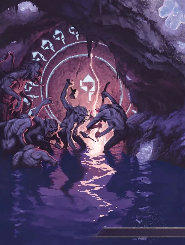 Specifically, Lamannia is a rejection of psychology that states that world is defined by subconscious imagery; there's no need for metaphors or stories, it just is. While Keith in 2017 framed the differences between Goblins and Orcs as the conflict between law and chaos, this was before Exploring Eberron elaborated on the setting's theory of the mind. A more current interpretation would be to distinguish the two ancestries by their relationship with the mind. Goblins seek to control the unconscious, to subjugate it. Orcs reject the mind in favor of the body. What this suggests is that orcs might have what we consider to be a more modern theory of the mind, that the mind is the result of physiological processes. You're angry because you're hungry; you're annoyed because you're sick. This would also suggest that the orcs have a tradition of alchemy, in a medicinal approach to the mind.