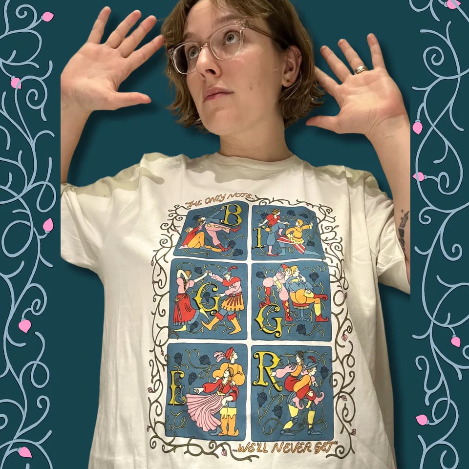 What else is new? I’ve been touring BIGGER with the father of my child, Brennan, (Seattle is next—sell this out please!). Now for the first time have MERCH! Go get a shirt, designed by my friend Maddie Fischer (who won the National College Improv Tournament with me in 2015)—I love it so much. Shirt will only be available on pre-sale for one more week!