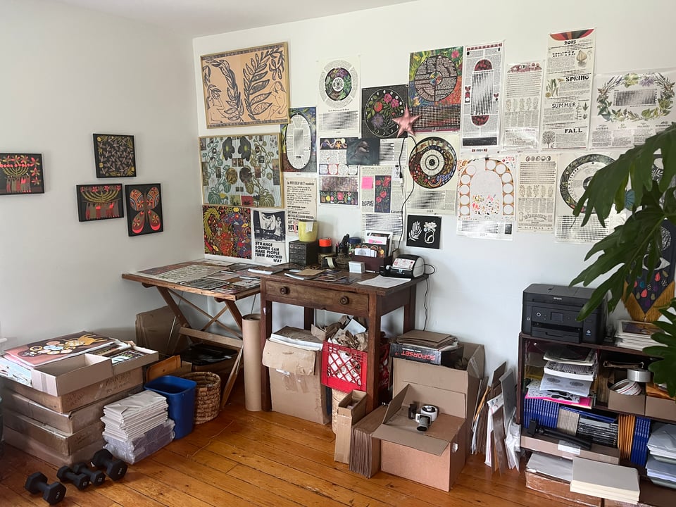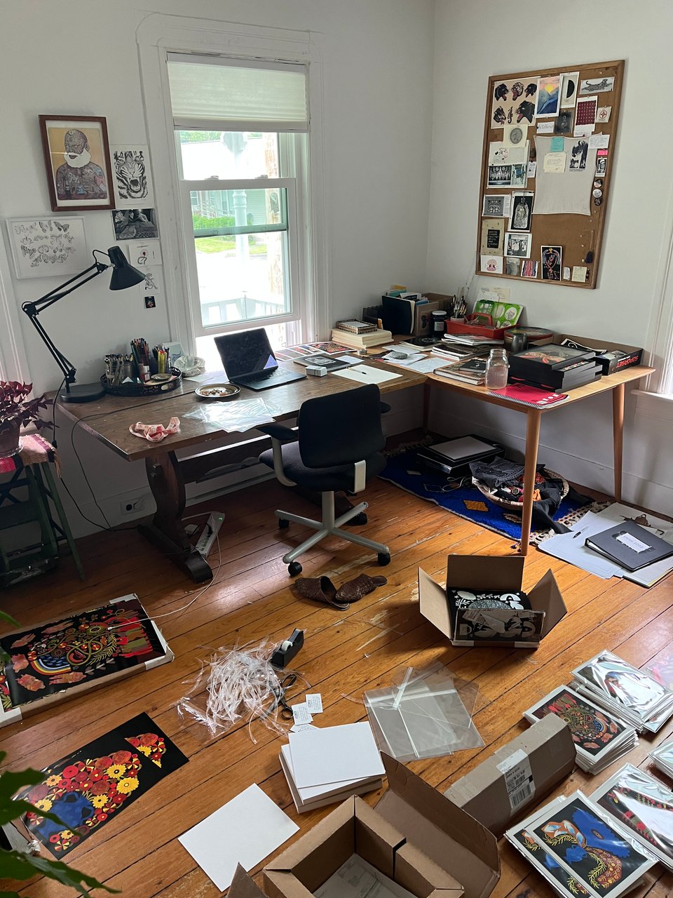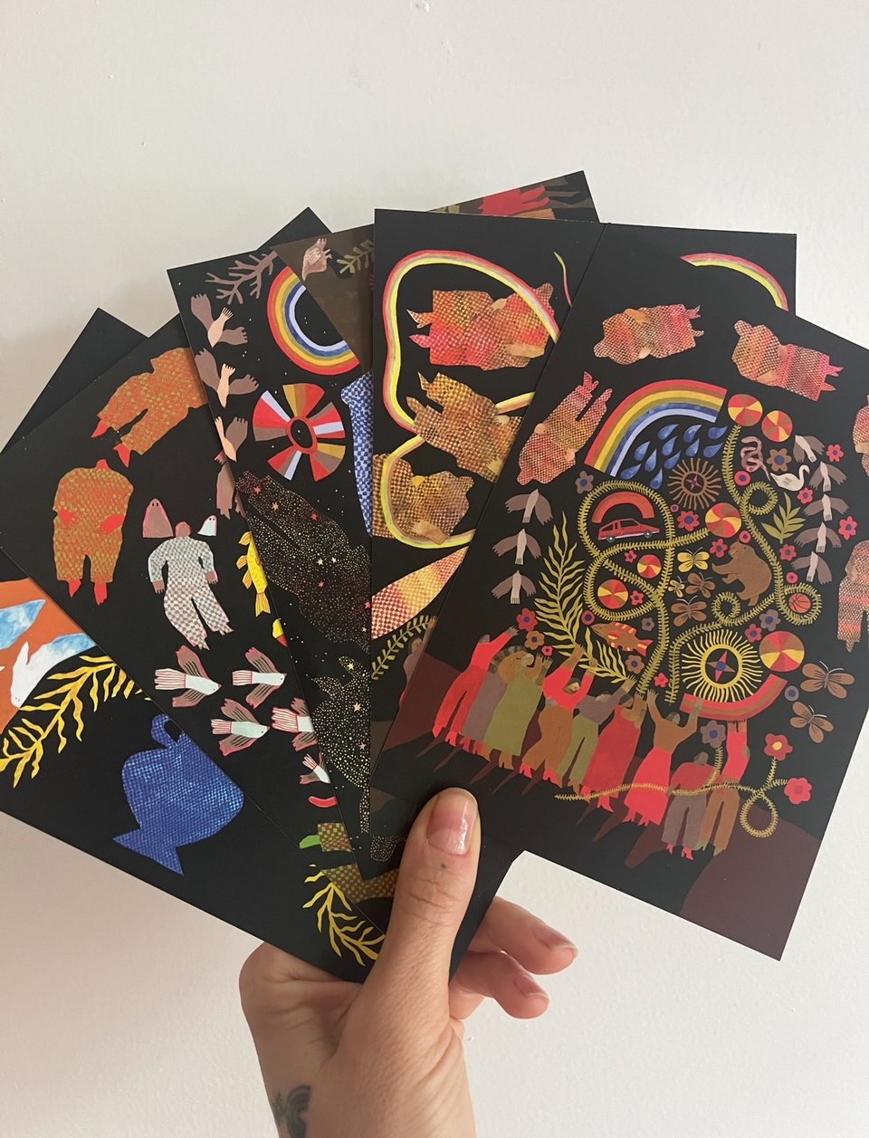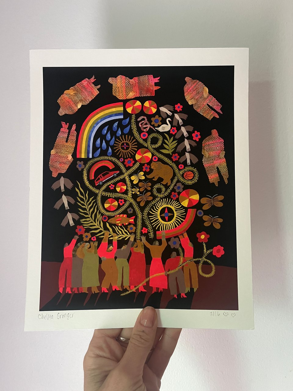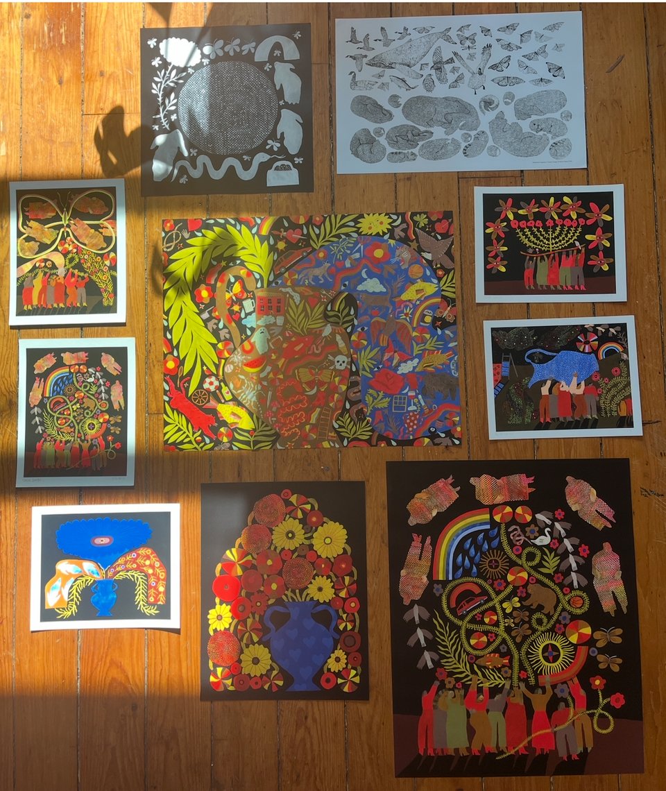 Hello and welcome to my first art & design email. Thank you so much for wanting to follow along with my practice. The intention of these once a month emails is to share my art: prints, posters, collaborations, mutual aid projects, paintings, visions, shows, etc. Scroll to the bottom for lots of photos! 🦋