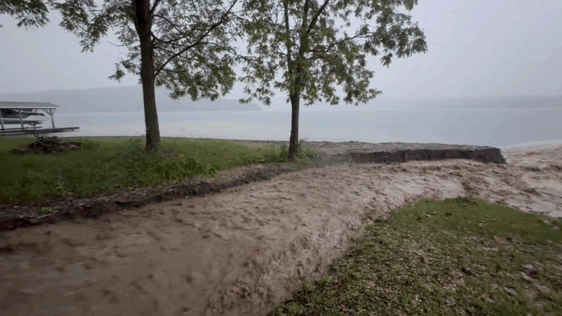 Ah early June where the sunshine lights up the days and the cool night weather keeps our sleep comfortable. Not really this year! We've finally ended (for now) what felt like 6 straight weeks of cold rainy weather, including some serious rainfall and flooding in the Keuka Lake area. The lake rose to levels we've rarely witnessed (lake level is managed through flood gates that empty into Seneca Lake) and our gully has been... active.