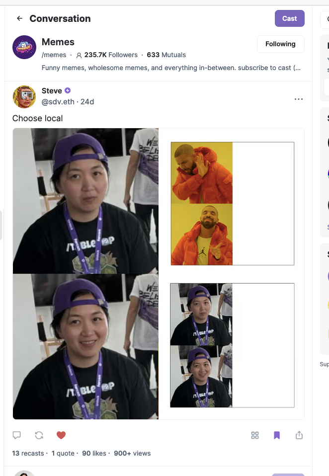 To me, this is where ‘s essay “Beware of Chasing Prestige” applies as well—since Farcaster is still an early social network, I usually get quizzical looks when I mention where I spend my time online. But…