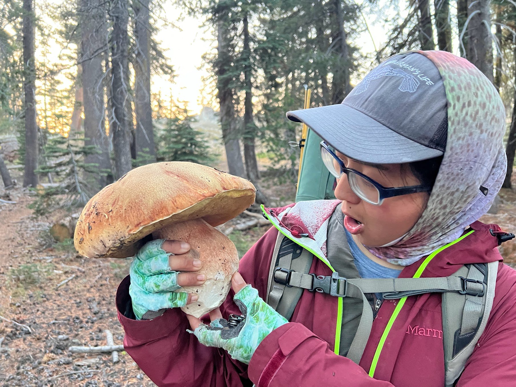 "Over here! It's HUGE!" My wife Yuhong pointed to the forest floor, just a few feet away from the winding trail that took us through the Sierra Nevada mountains. A tan dinner plate-sized dome poked through the dirt, looking unnaturally smooth and clean among the forest debris. It was the telltale sign of a Boletus grand edulus, or the California King Bolete, or the Porcini--many names for the most prized fungus in this part of the world. They are sold for US$50 a pound in bougie shops, if they are even in season.