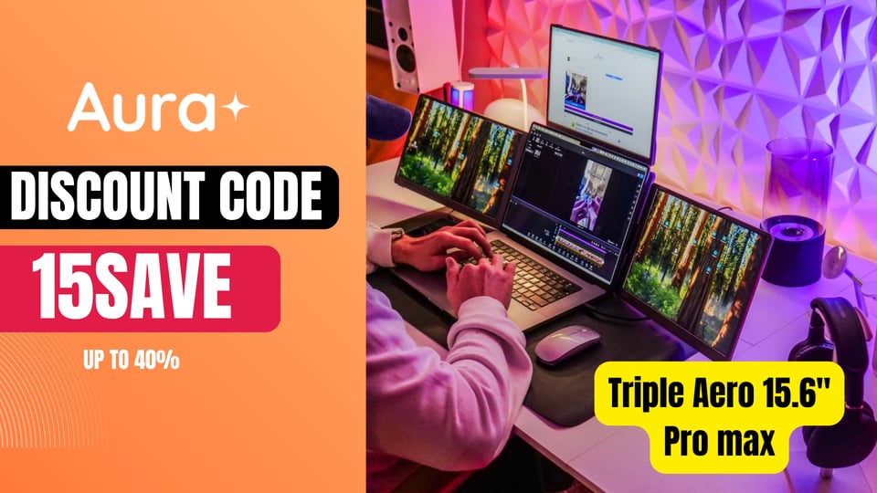 The Best Monitors for Triple Screen Setup — Meet Aura Triple Aero 15.6” (Use code 15SAVE Up to 40% + extra $15)
