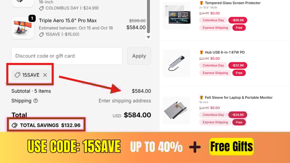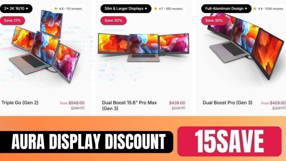The Best Triple Portable Monitor for Laptop 15.6 Inch - Use Code 15SAVE Up to 40% + extra $15 at Aura Displays