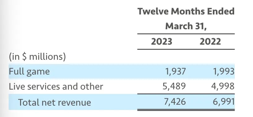 Here comes the bombshell you didn’t see coming: of the $7.4 billion revenue made by EA in 2023, only 1/4 comes from game sales, and a whopping 3/4 comes from in-app purchases.