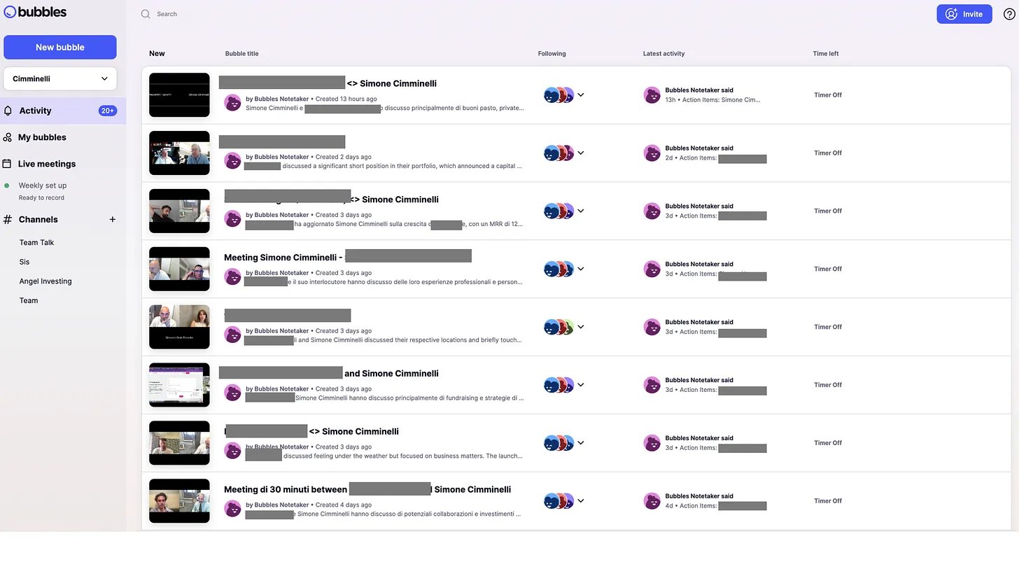 Finally, the video call is always recorded with Bubbles. Bubbles creates a link for each video call shared with all call participants. The link contains the recording with the meeting transcript. That link, along with my note, ends up in the CRM.