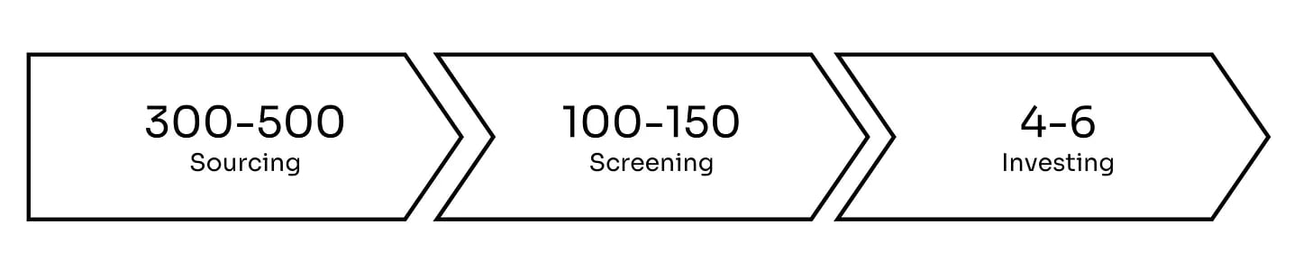 Each year, I am exposed to 300-500 projects. Every week, I receive between 3 and 6 decks on average. These decks come from friends, cold contacts via LinkedIn, Twitter, and newsletter forms. Annually, this amounts to 150-200 projects I review inbound. This number more than doubles when considering: