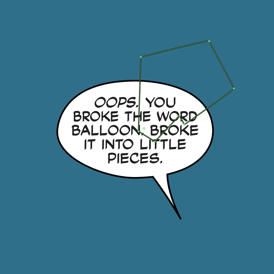 Today, I’m going to show you how to make a word balloon look like a shattered dinner plate. Or a broken window. Take your pick. These instructions are specific to Adobe Illustrator.