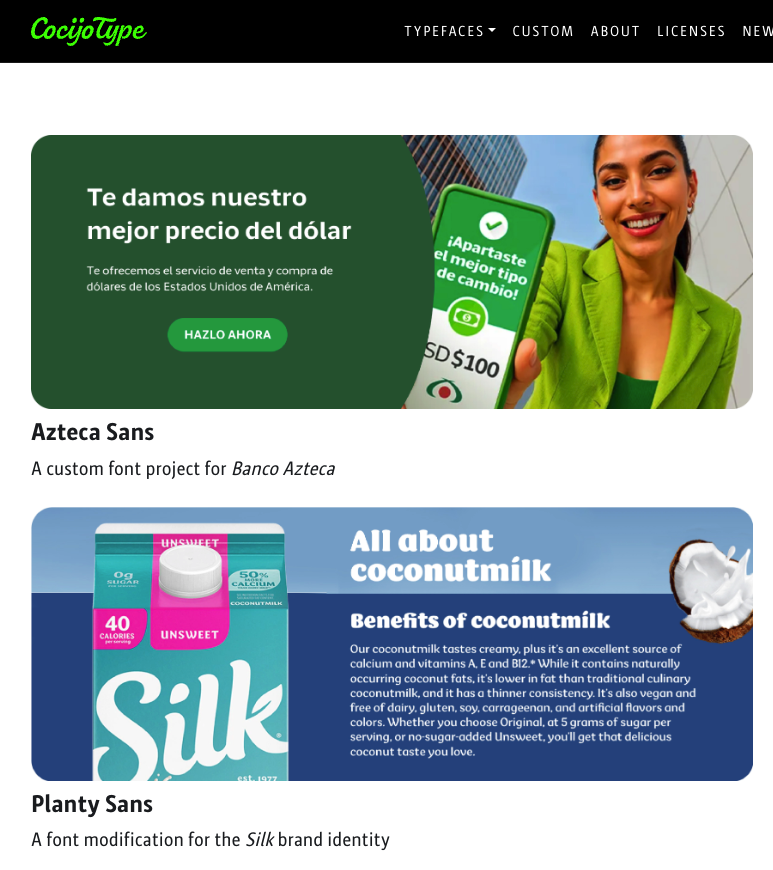 CocijoType was founded in 2009 as an independent type foundry, with a small library and fonts full of character based on our roots in Mexico and beyond.