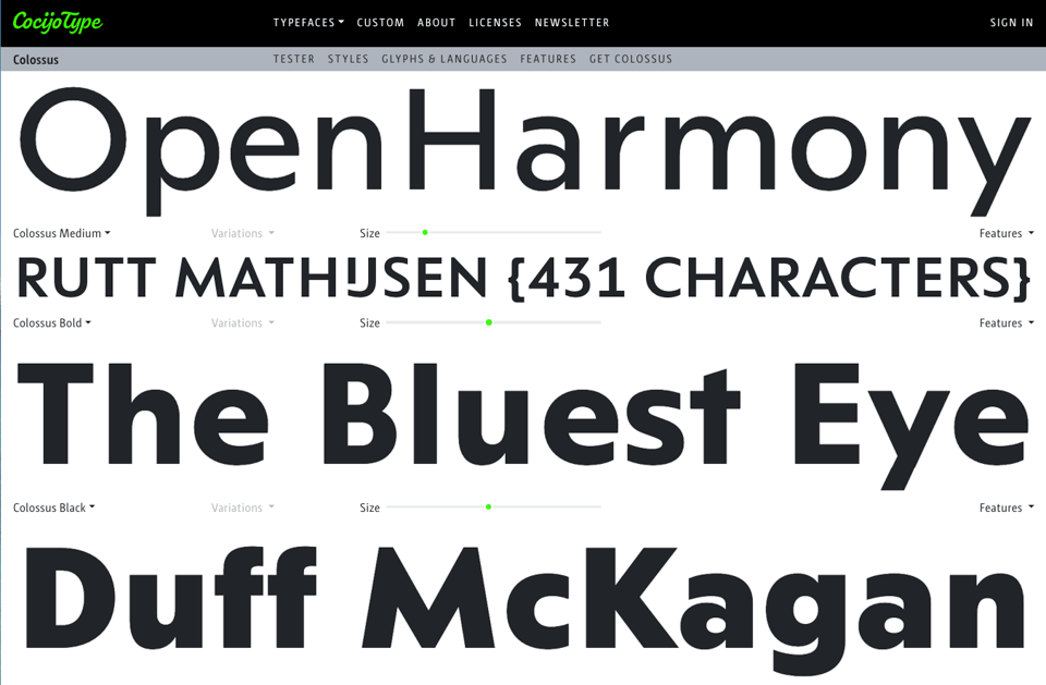 We also redesigned our website: You can now edit live text, see the full glyph range, and confirm language support. We also added common license types to make our fonts easier to use.