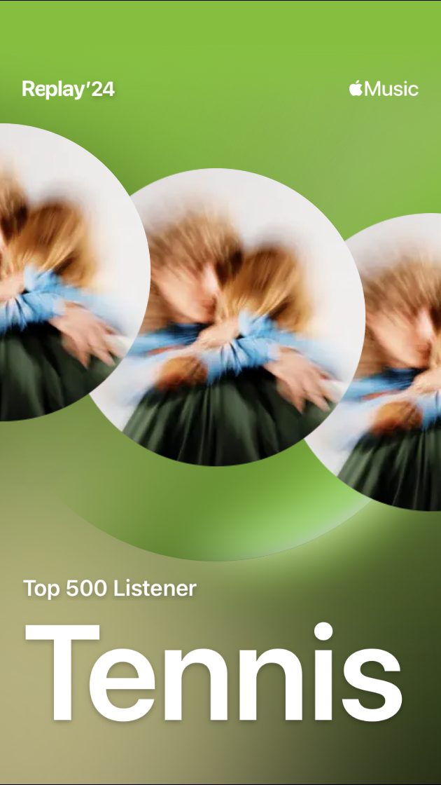 Then, in 2024, I pushed my love for Tennis a little further. At the end of the year, Apple told me I was a top-500 listener. I have no way of knowing how many people listen to Tennis every year, but I imagine it’s a lot more than 500, so I was kind of proud of myself for “achieving” such a “milestone.” But learning this made me think about what it would take to be a top-100 or a top-10 listener, and I came up with a brilliant idea: I’ll make a playlist of all my favorite Tennis songs and play it on repeat every night in 2025 with my phone on silent. Surely doing that and actually listening to them on a daily basis would put me in the top 10, no?