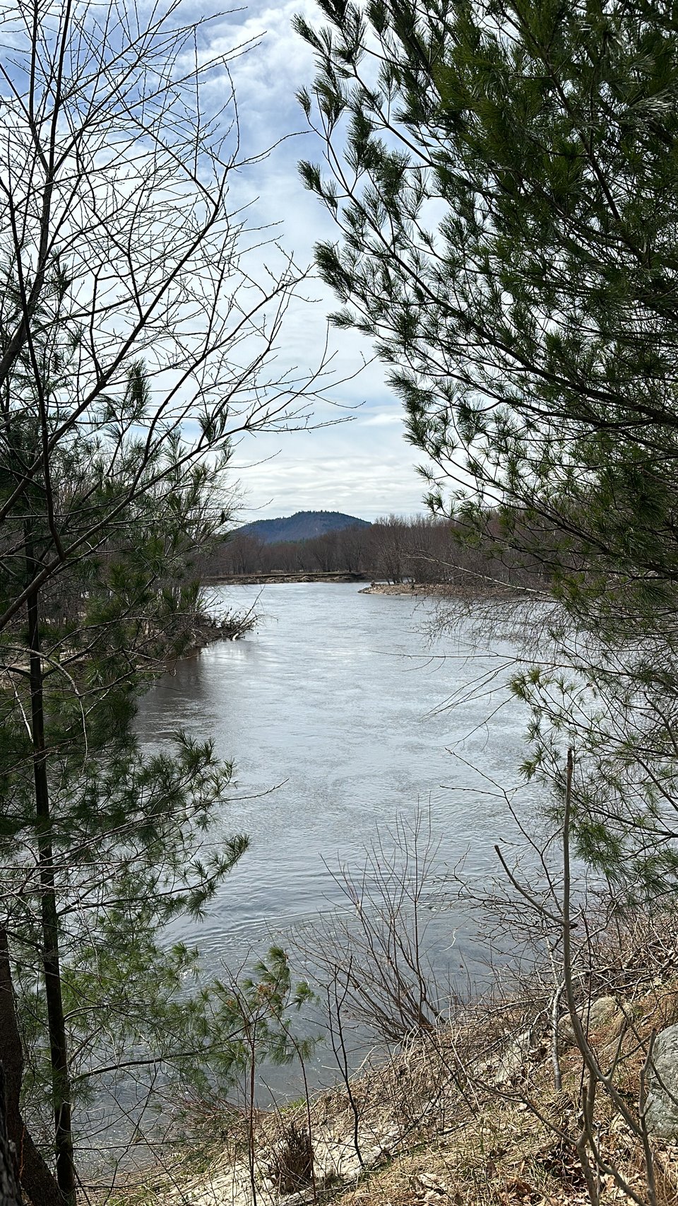 I focused on gripping the handle of the yellow and black umbrella, by the flowing river beneath blue-green hills on this rainy grey morning. It’s beautiful, this place you chose to rest. It is peaceful and it is full of gentle, earthly wonders. Tiny red lichen, pine trees, green moss, yellow grass, an island across the river.