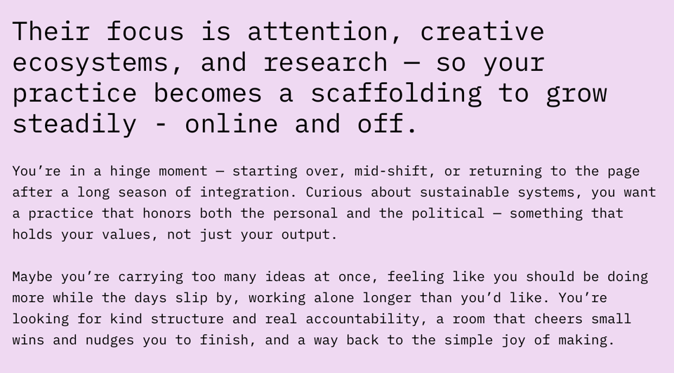 I already know that having this container is going to help me be more consistent in my output, more spacious in my creations, and serve even more potential students and clients with copy that actually tells the story of the transformation I provide in classrooms and 1:1 settings, not just naming what I do in a vague way.