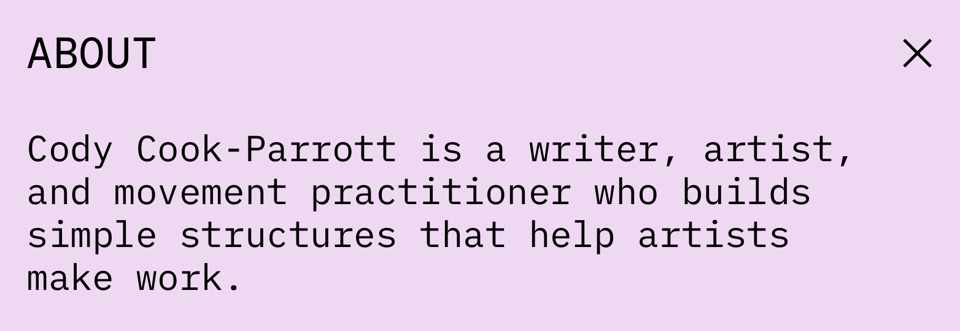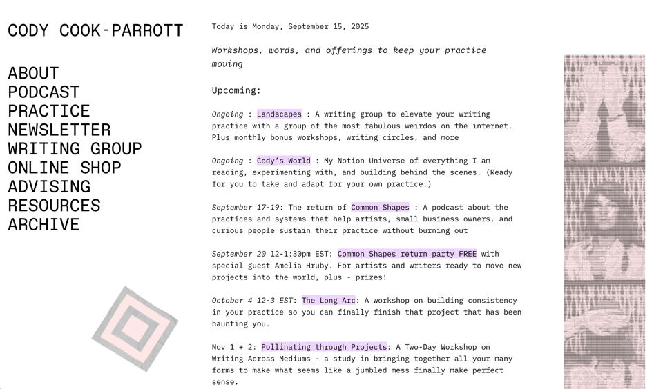 Finally I turned to Nicole Cloutier - the copywriting poet of my dreams. I knew that my website couldn’t just keep saying - I am Cody I make art and run a writing group and teach classes. While my newsletter has always felt like a strong place to connect and share with readers how I do things, my website has always been very basic.