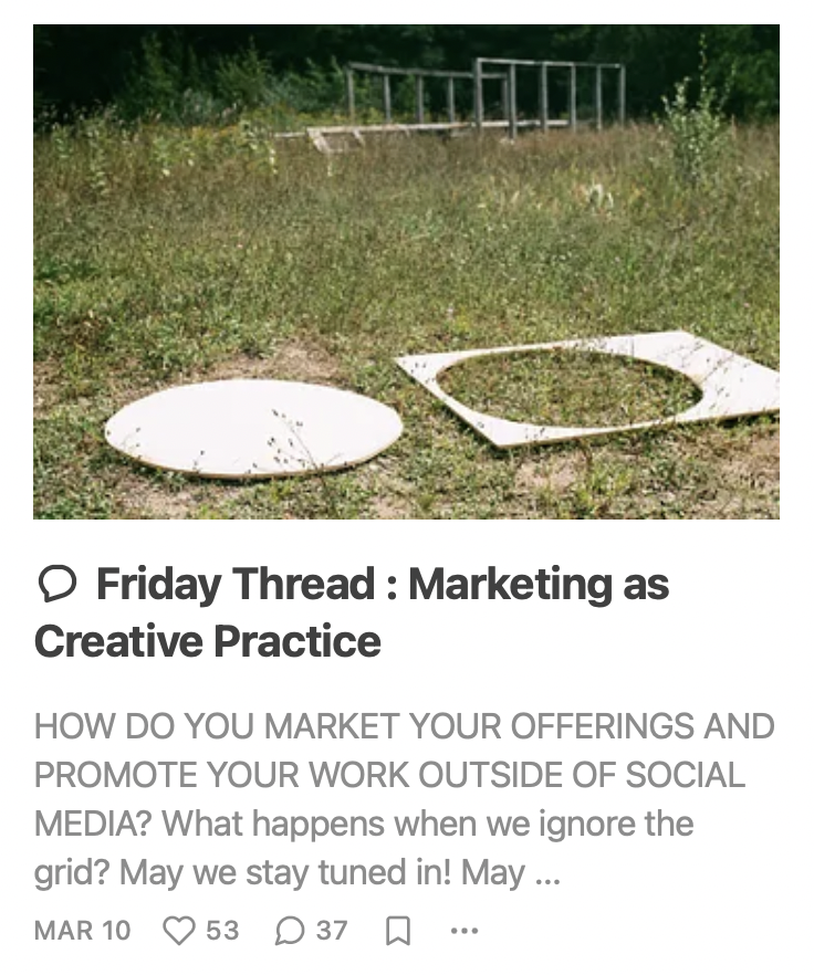 Processing, organizing, and synthesizing notes is a huge part of my practice, and I find when I teach my own eco system building ways to others it creates an effortless path to invention. One of my favorite projects I have ever released into the world is Newsletter Class because it has such a direct outcome - people make newsletters! My inbox is often filled with links to newsletters people launch after taking the class and every time I think - yes yes this is exactly why I follow the call of creation!