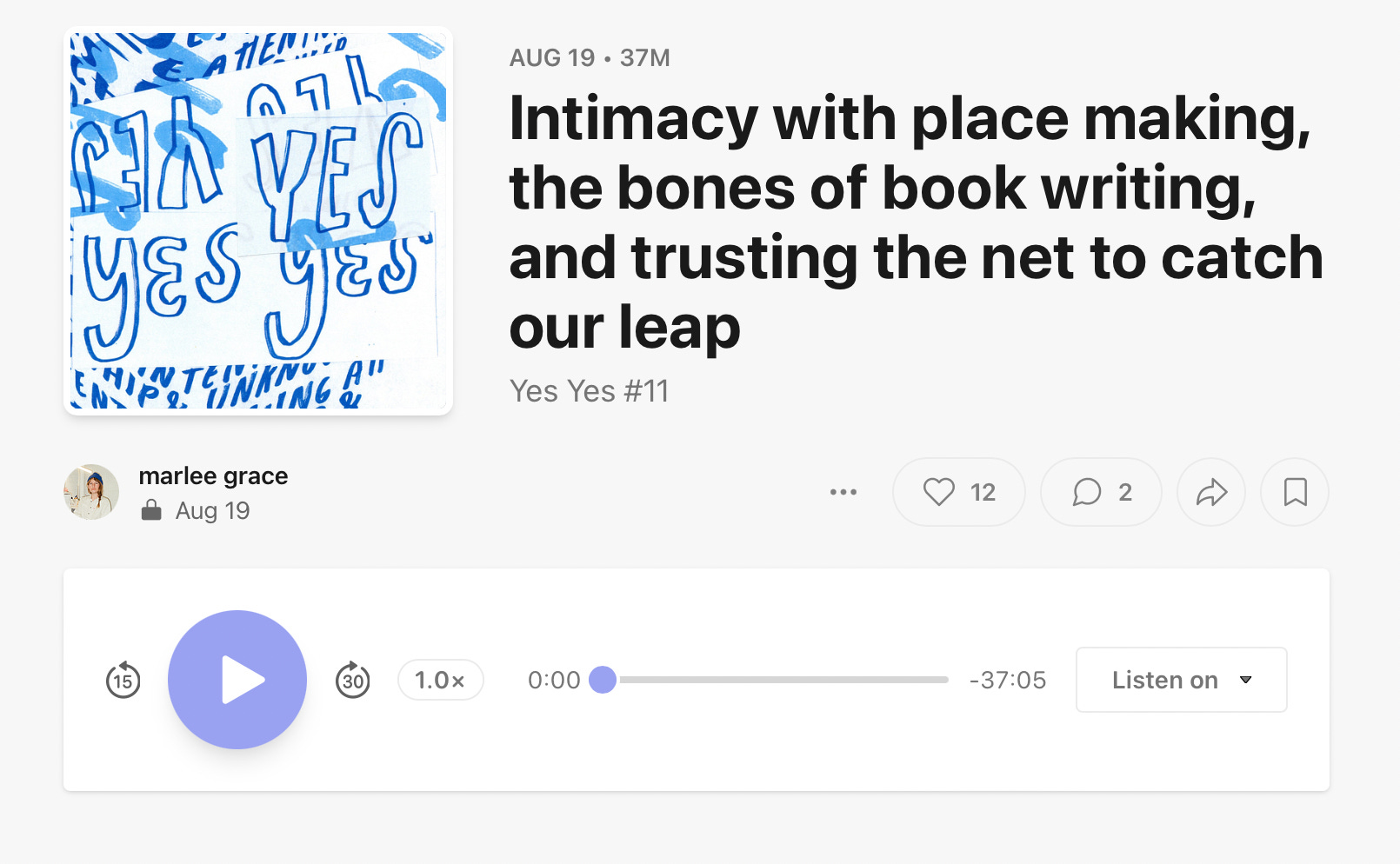 Monday Monday is a free weekly newsletter. If you want to support this space and have access to my monthly advice podcast + transcribed column YES YES become a paid subscriber. Twelve episodes are ready for you to listen to in the apple podcast app or browser.