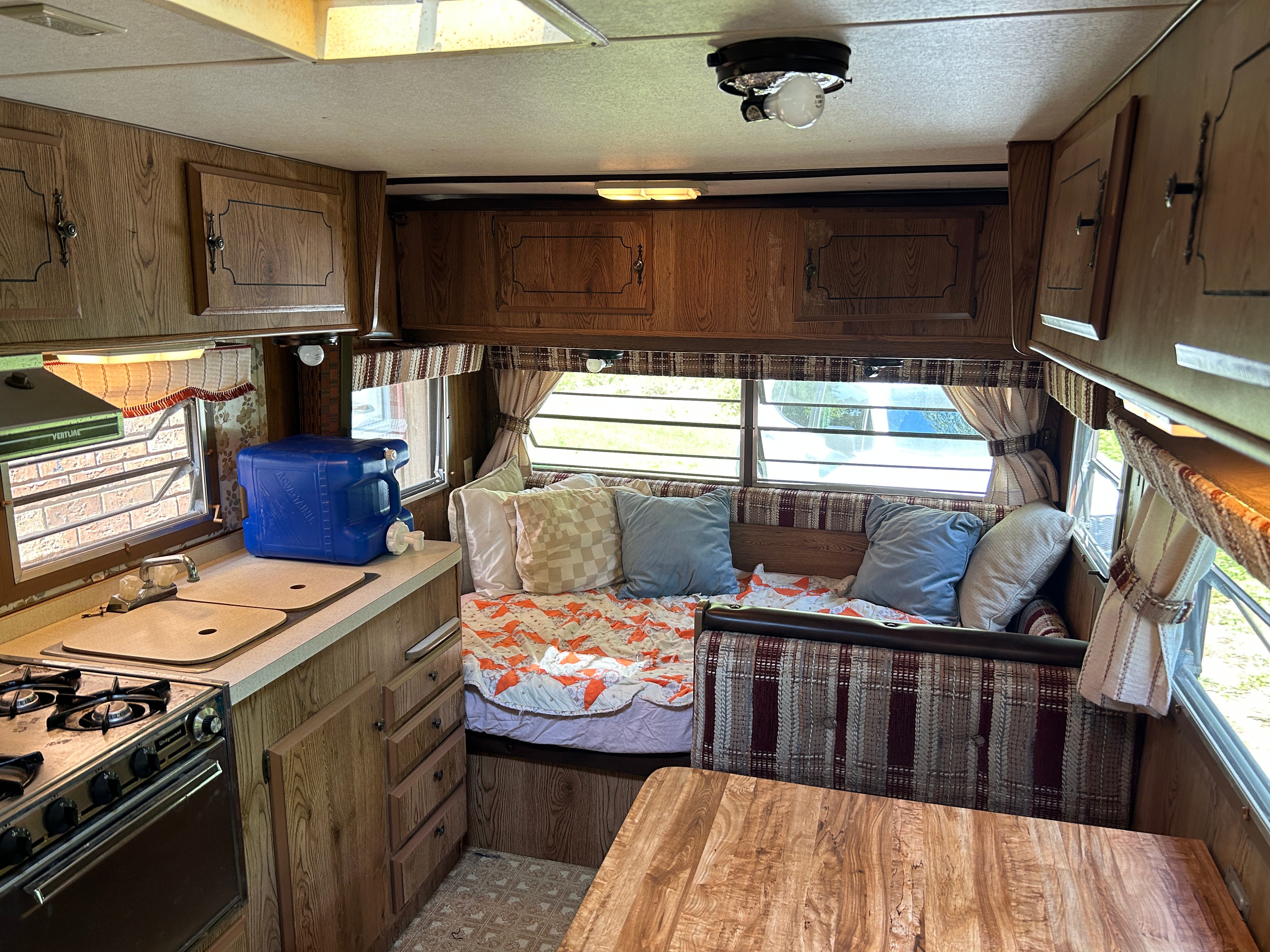 When I bought this house on a few acres of land almost a year ago the vision was to start an artist residency, host writers and artists, and perhaps also small retreats. The camper is the first step in expanding places for people to stay, along with the garden shed we put a window in this summer and new roof on. It’s looking like this will be an extension / studio for artists staying in the camper.