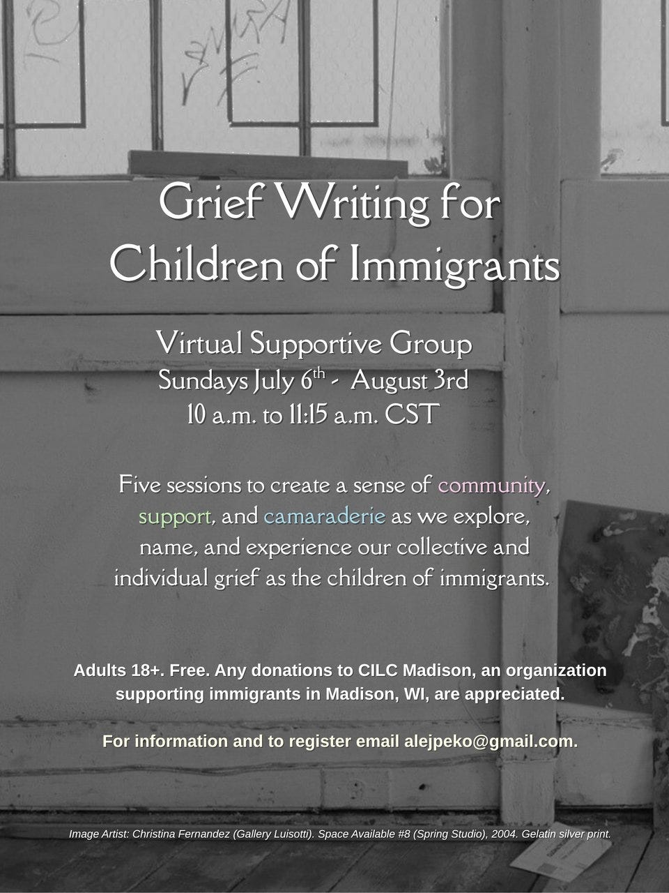 Grief Writing for Children of Immigrants is a free writing series hosted by Alej Perez-Kohl, MS, LMFT