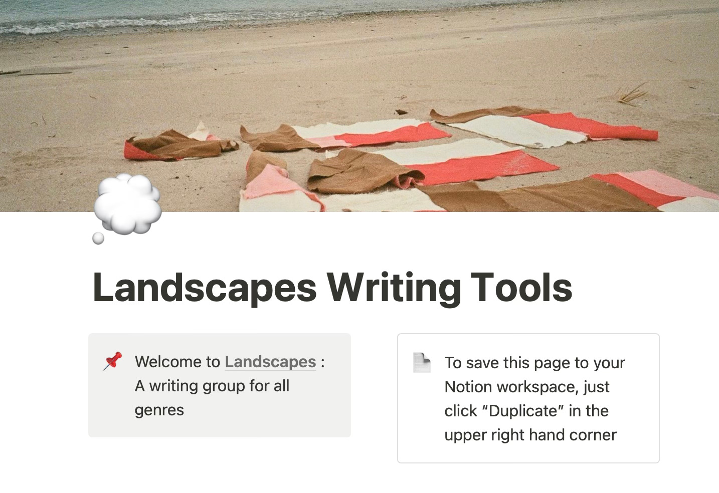 When you join you get a Notion template of writing tools, a reading list, 27 ways to start writing, and more