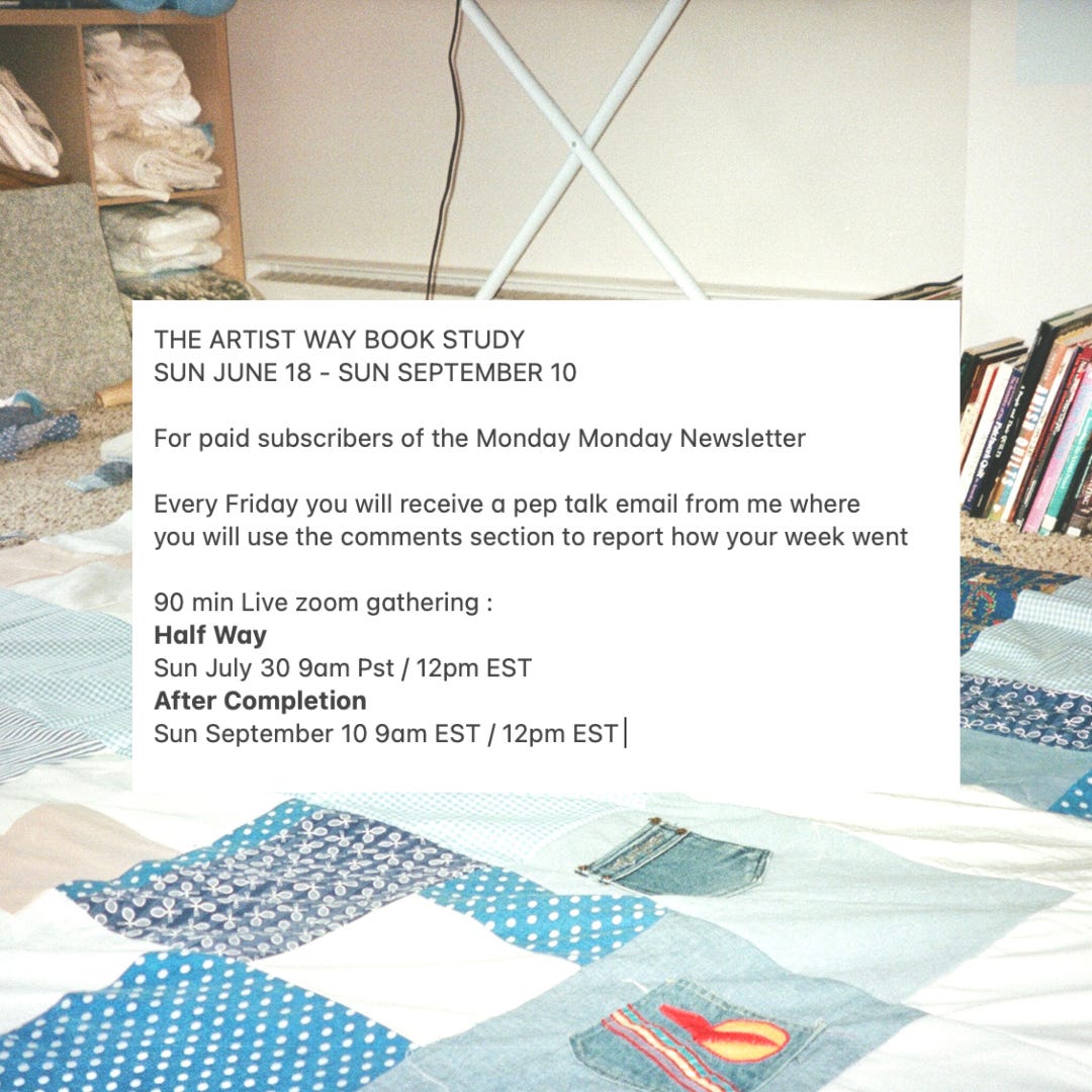 I want to invite you to The Artist’s Way Book Study starting Sunday June 18 for paid subscribers of the Monday Monday newsletter