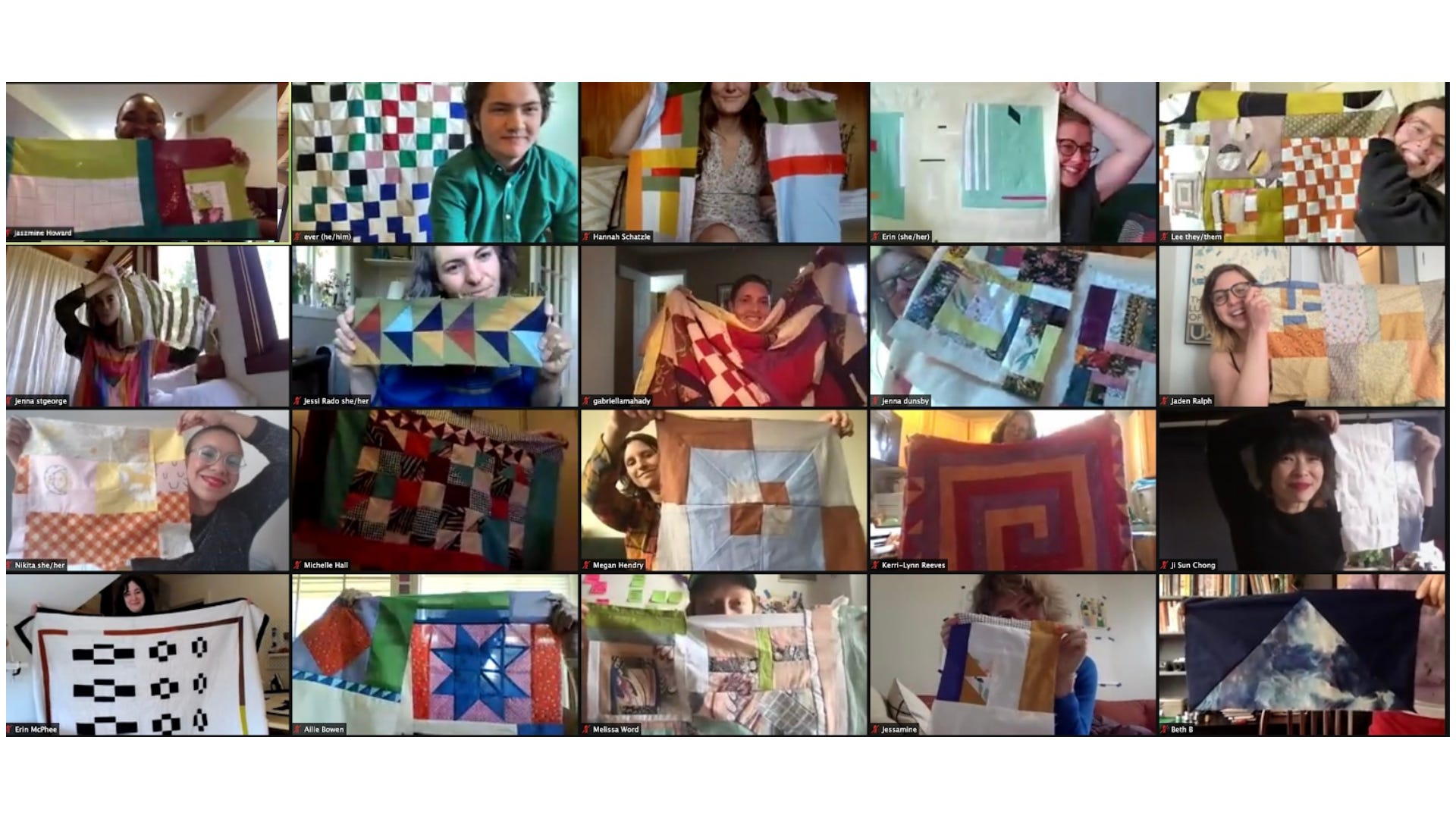 A Quilt is Something Human is a four week course on zoom where you learn to make an improvised quilt from beginning to end. A course where there is no messing up, no rulers, and very few straight lines. You have to know very little to dive in and you hang out with other people ready to cheer you on for the month.