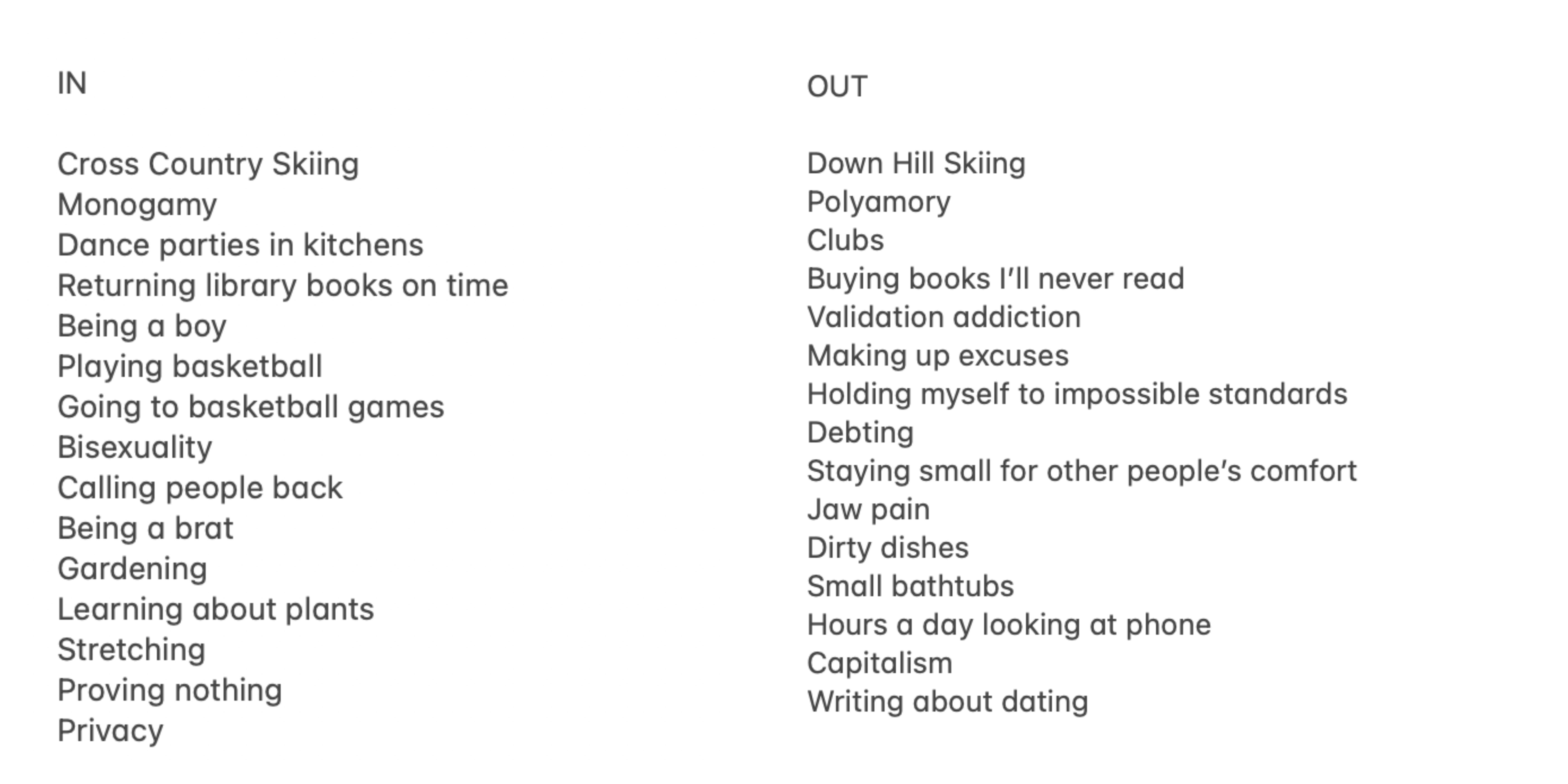 A reminder my INS and OUTS are MY ins and outs - may your list look entirely different