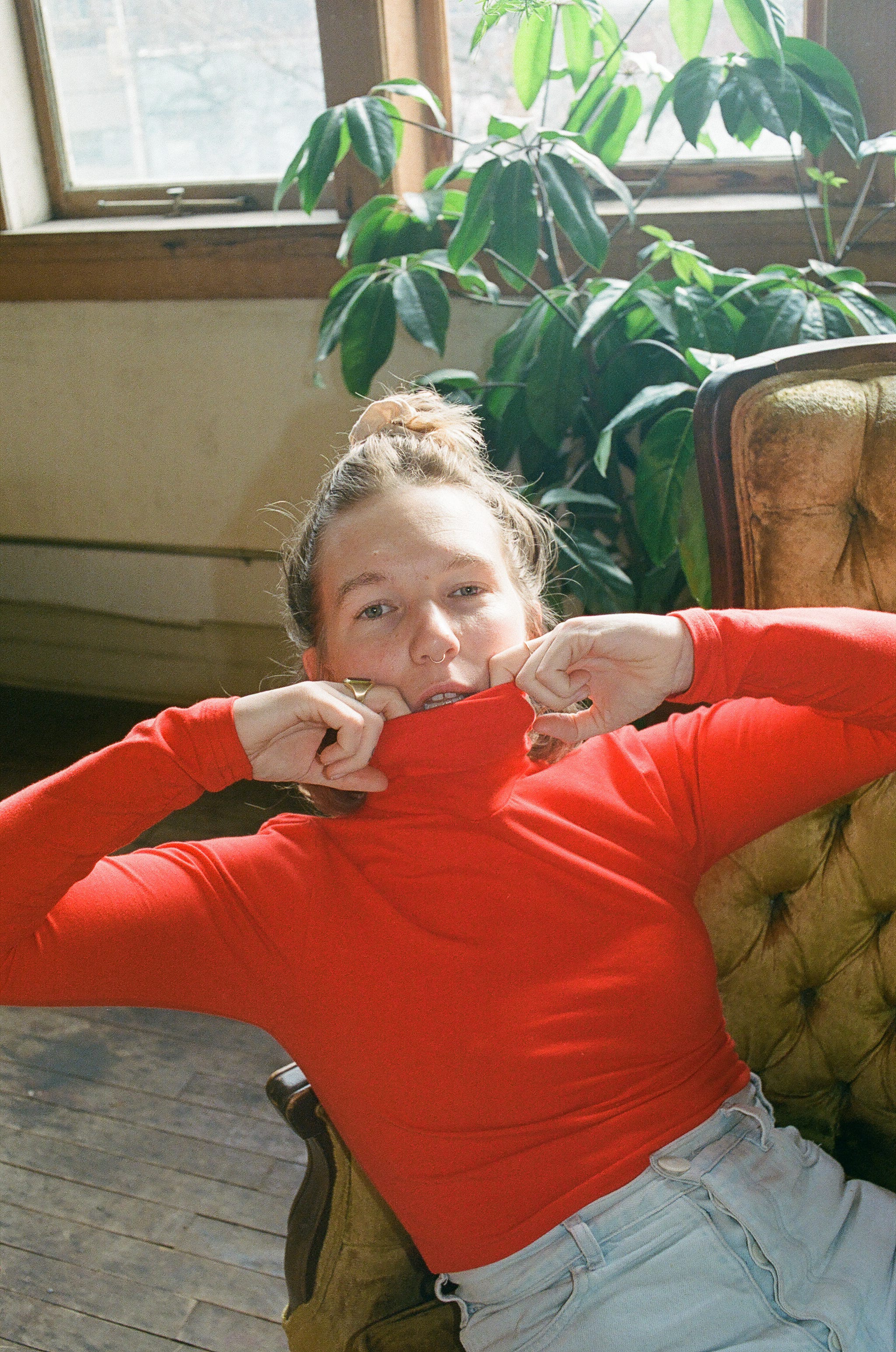 Photo of me in a red turtleneck by Anna Friss