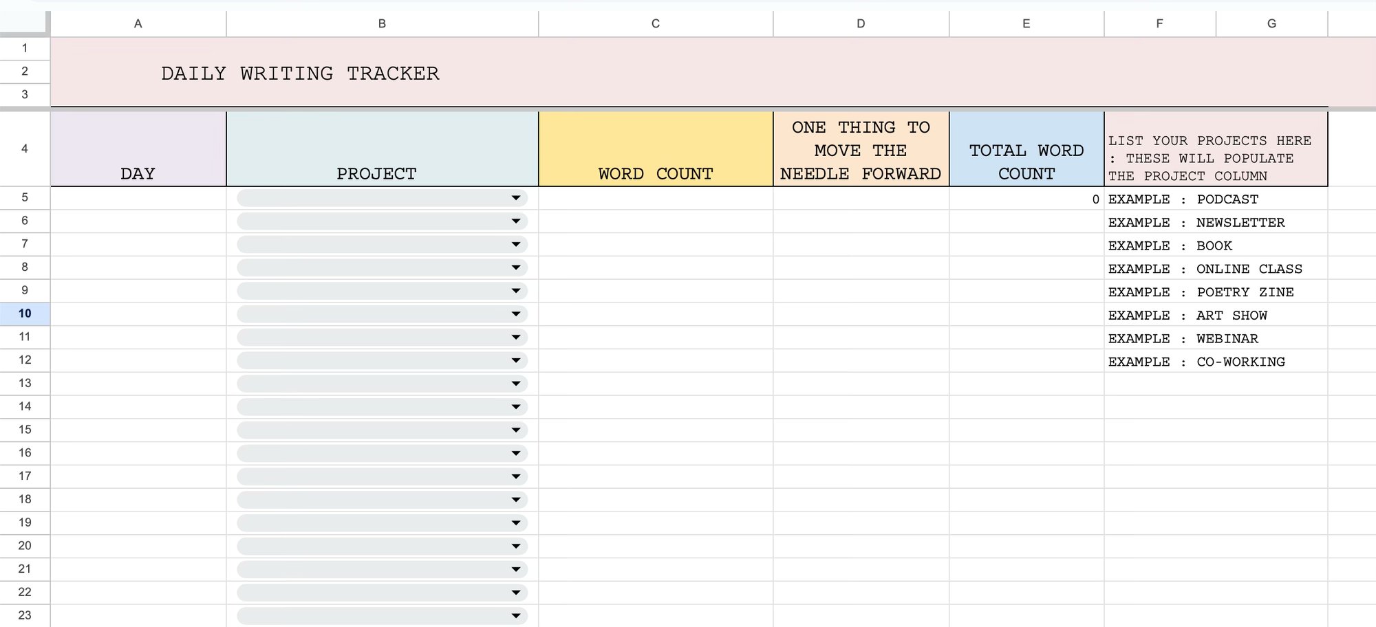 The tracker is also great if you want to do an advent sort of writing challenge for yourself, like twenty days of writing every day leading up to the Solstice.