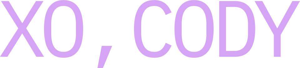 → Cody’s Big Week of Sales starts Nov 24 : Click here to opt into the list to hear all about discounted classes, Creative Advising, Classifieds, and brand new things!