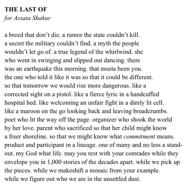 The latest newsletter from Tamara Santibañez, always touching in on so much, including this poem from Assata Shakur