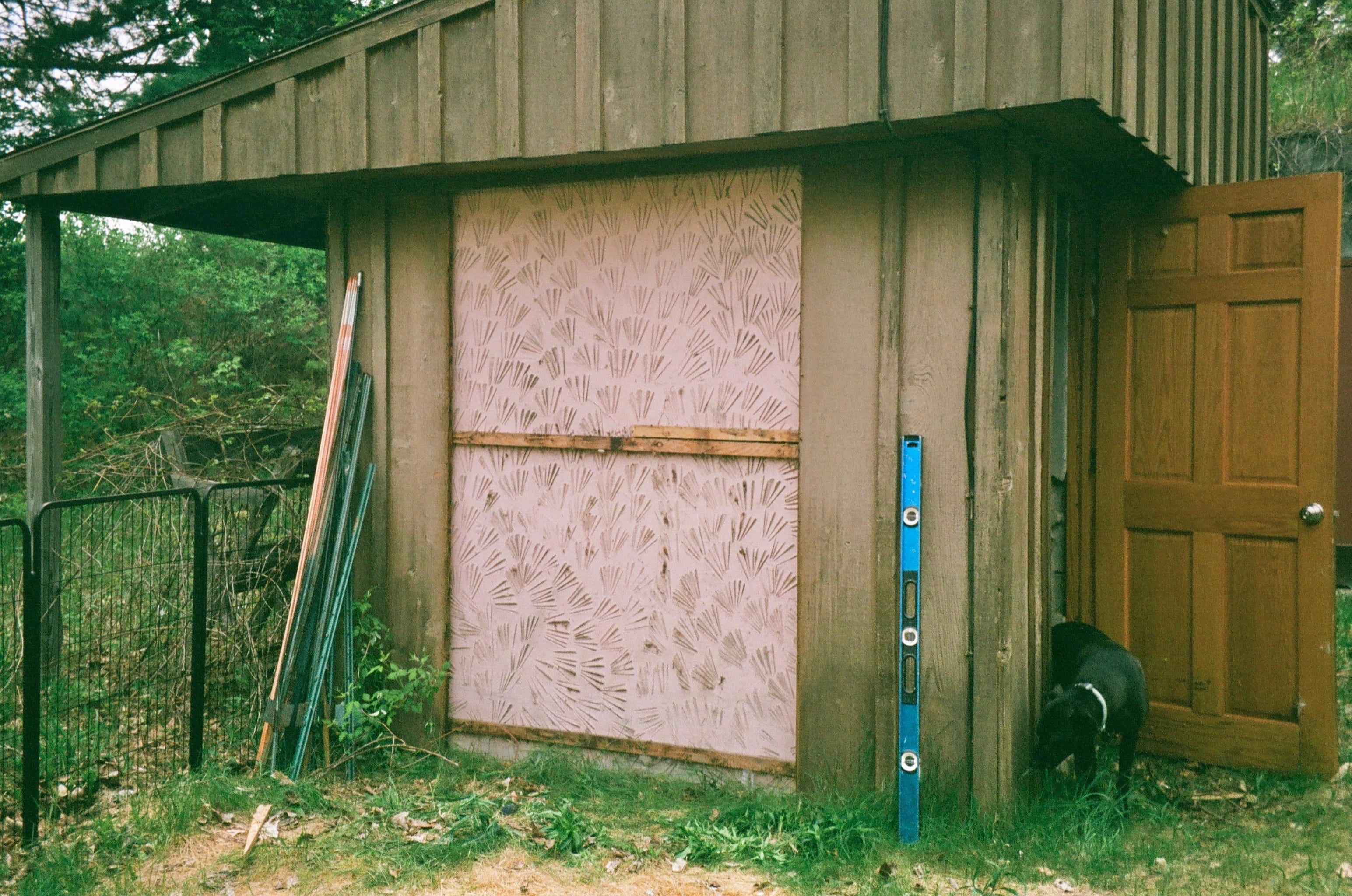 I weed whacked a path to the raspberry bushes and June goes with me each night before sunset to pick them. I put them in my little strainer and she picks them right off the stem and eats them. Brenin finished putting the cream metal roof on the small garden shed that I can’t figure out if it’s a little writing studio or somewhere for someone to sleep.