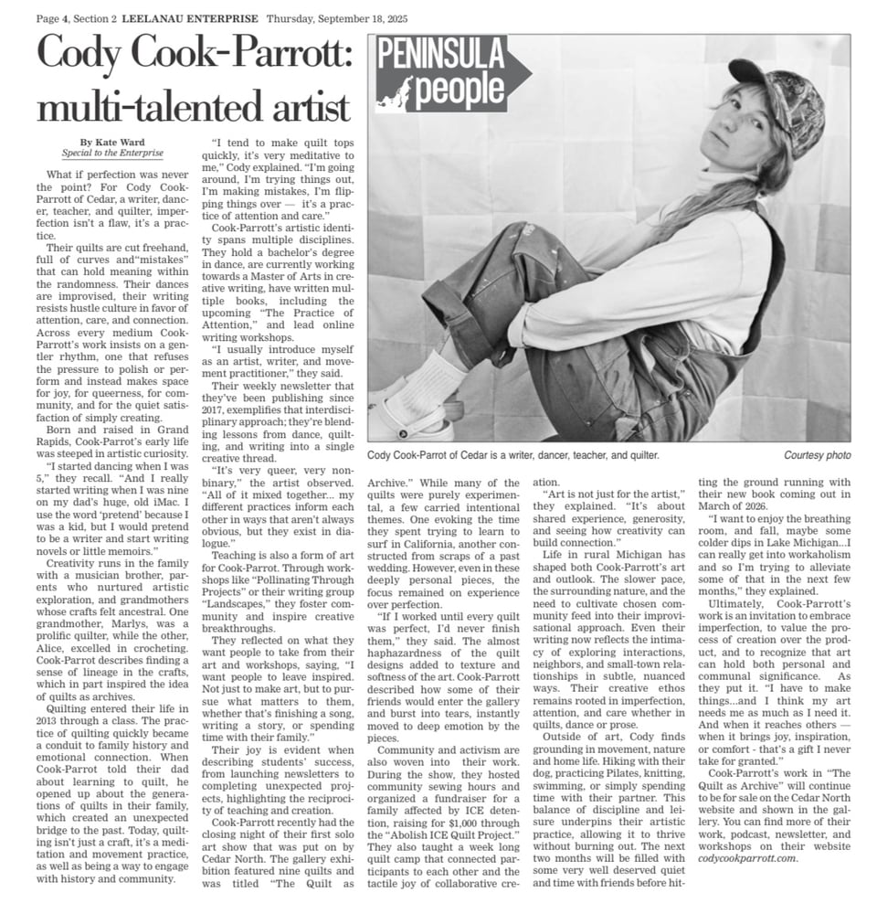 Thank you to Kate Ward who interviewed me for the Leelanau Enterprise this past week! It felt amazing to take up space as a queer and non binary person in our local paper. Zoom in to read or grab a copy at Buntings or Andersons ;)