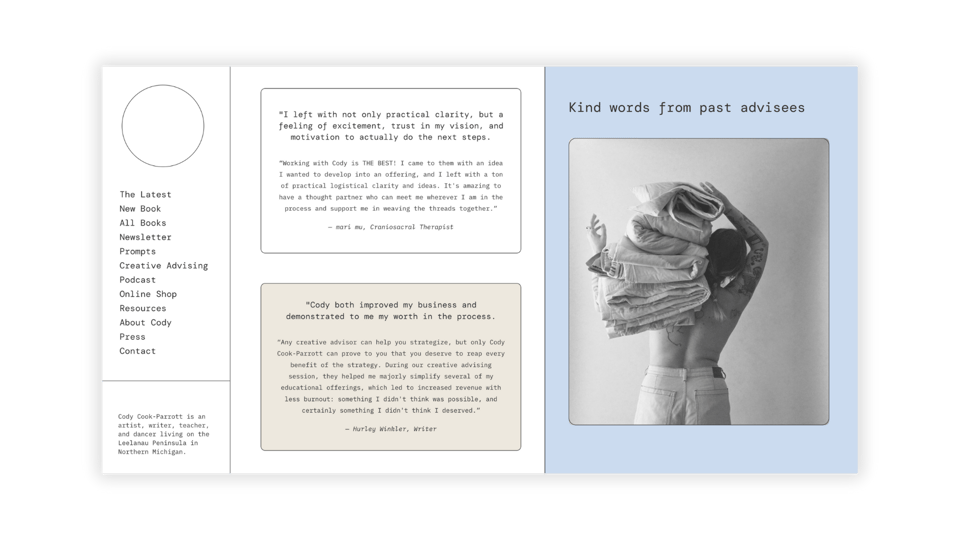 Read on to hear about my website decisions and what’s new in Cody’s World (hint : MFA THESIS SYLLABUS!)