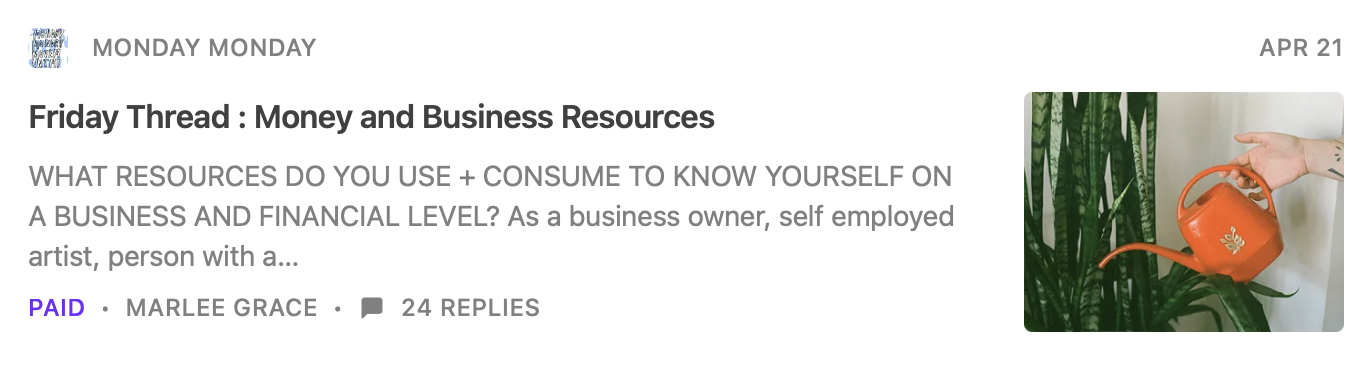 Monday Monday is a free weekly newsletter. If you want to support this space and have access to my monthly advice podcast + transcribed column YES YES as well as the occasional Friday Thread become a paid subscriber.
