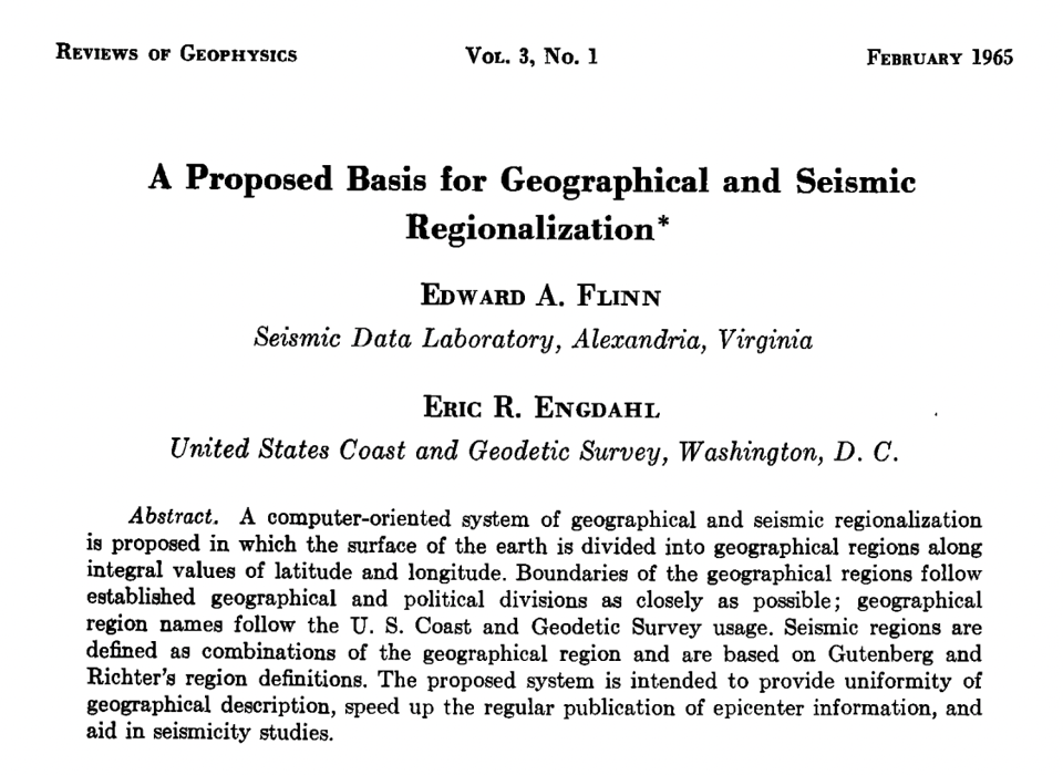 For anyone who wants to spend more time than Collective Study has to look into this, the history of the drafting of the FE regions could be another line of enquiry. The scheme is said to be in use at all seismological data centres.