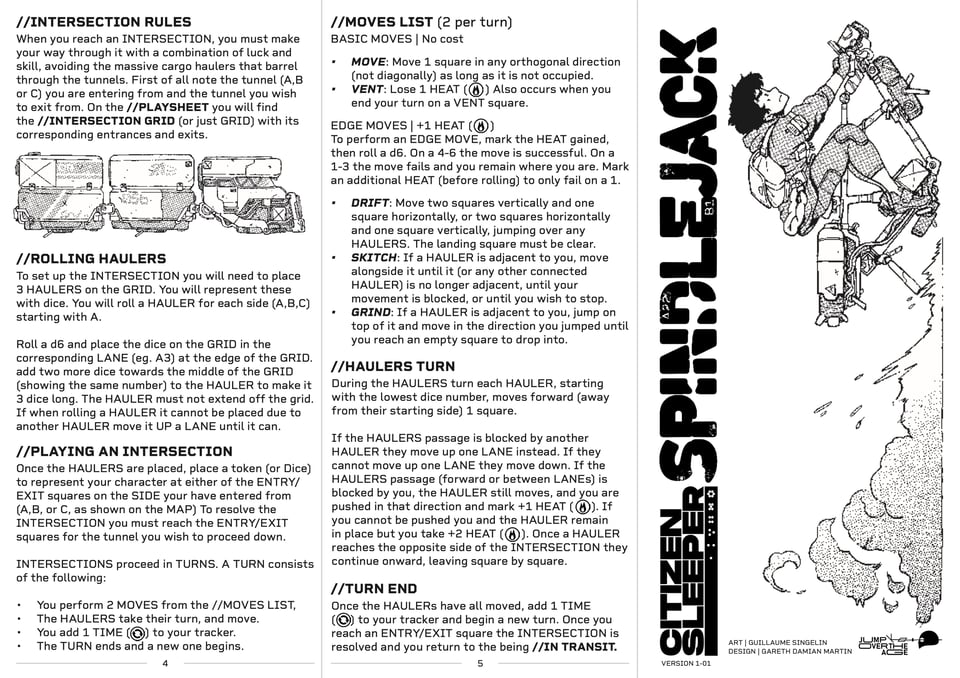 Citizen Sleeper / Spindlejack - J’apprends cette semaine que l’excellent jeu vidéo Citizen Sleeper a été décliné en petit jeu de société à imprimer soi-même, ce qui est une excellente nouvelle et vient ajouter à la pile des jeux vidéos adaptés en jeux de société, comme si la hype pour un jeu virtuel était le papier et le carton ! En tout cas, ce que propose Spindlejack ce sont des courses contre la montre pour livrer ses colis, dans un environnement où chaque mauvais choix d’itinéraire peut coûter gros et où les intersections sont des labyrinthes en mouvement. Voilà, ça n’a pas l’air d’être beaucoup plus qu’un petit jeu de déplacement, et franchement, comme rejeton papier d’un jeu vidéo indé, je trouve que c’est le parfait type d’adaptation !