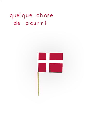 Quelque chose de pourri – Pauvre pays du Danemark, qui se retrouve pour l’éternité associé à la pièce de Shakespeare… Mais point de théâtre dans ce très chouette zine typographique de Tony Papin, seulement un récit de voyage qui fait la part belle aux kilomètres parcourus, aux horaires de réveil et aux aliments avalés. On ne saura pas grand-chose de ce que Tony a vu des pays scandinaves, mais on saura combien de fois il a fait caca, et ça c’est important.