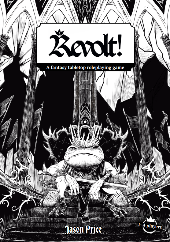 Revolt! – J’aime bien les jeux de Jason Price, ils sont toujours impeccablement faits, mais j’ai toujours la sensation qu’ils manquent d’un petit quelque chose, et Revolt! ne fait hélas pas exception. Sur le papier pourtant c’est très prometteur : un jeu qui parle de révolution, entièrement à base de cartes nous donnant des amorces de scènes… Sauf qu’à ces amorces sont liées des valeurs chiffrées qui ont une importance pour la fin du jeu et qu’on ne peut pas modifier, rendant le tout très aléatoire. Et puis, sur un plan plus idéologique, un jeu qui me permet de jouer ce qui mène jusqu’à la révolte, sans aller en explorer les ramifications autrement que par « et si vous voulez rejouer, dites qu’un nouveau monarque monte sur le trône et qu’il faut recommencer la révolte », ça me dégonfle un peu l’intérêt.