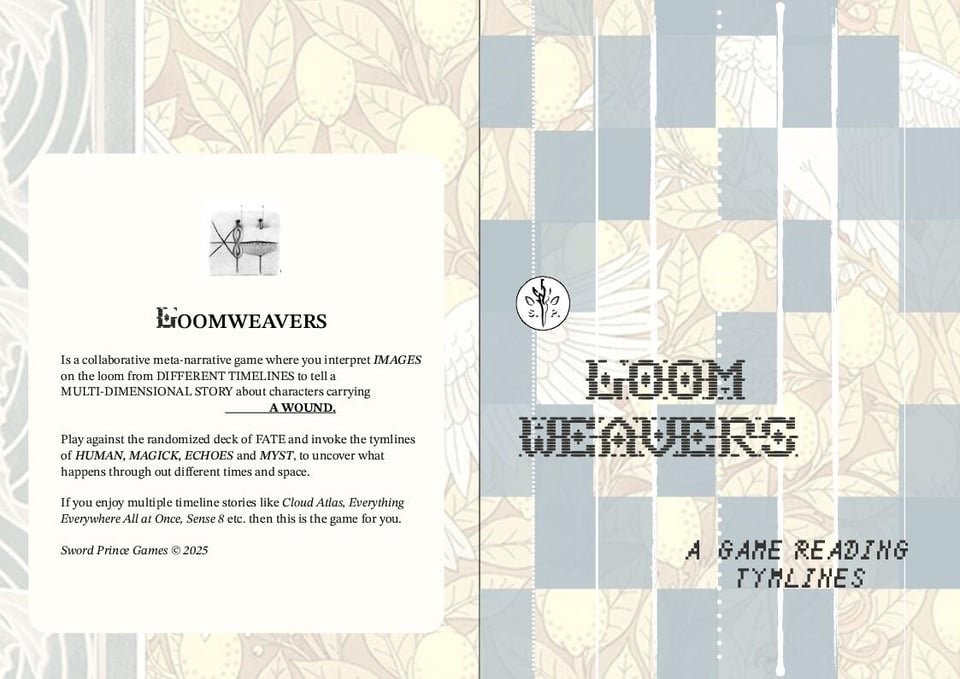 LOOMWEAVERS – Je vais être honnête : je n’ai pas compris grand-chose à la façon de jouer à LOOMWEAVERS, à part qu’il faut manipuler des cartes de tarot ou d’autres jeux et interpréter des images, comme autant de points d’ancrage d’univers parallèles. Il y a néanmoins quelque chose d’assez séduisant dans son écriture maladroite : difficile de ne pas ressentir de la tendresse envers un jeu qui parle de “timelyns” et de “magick” !