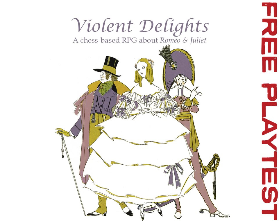 Violent Delights – Décidément tu es difficile à satisfaire et tu veux quelque chose qui change encore plus de l’ordinaire… Eh bien soit, voici un JdR pour réécrire l’histoire de Roméo et Juliette, en partant du principe que les pièces d’un jeu d’échecs sont les personnages de la pièce et que chacun de leur mouvement symbolise quelque chose entre la danse et le combat. J’ai (une fois de plus) pas tout compris, mais la page itch du jeu inclut un tuto en vidéo, ce qui est une chouette initiative !
