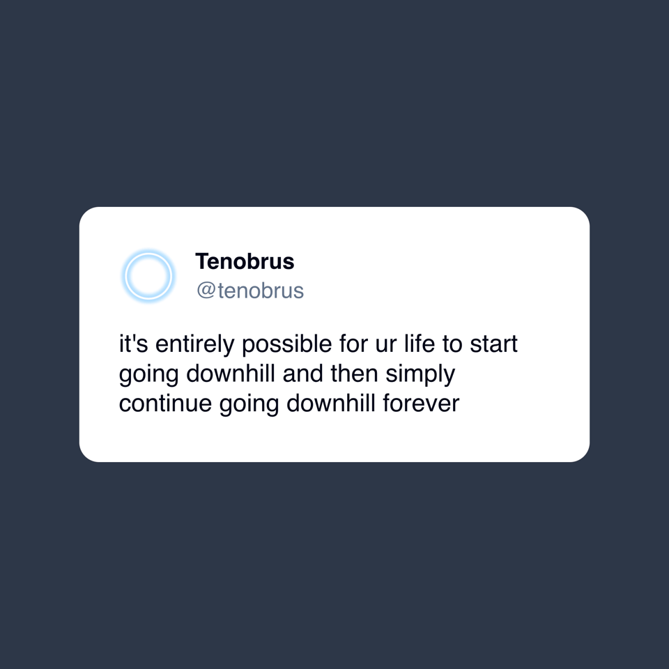 Not the most refreshing sentiment, and one that I truly started to live in fear of. Nothing was preventing my life from continuing to spiral downhill (especially with regards to my brother’s/wife’s health), and that had become quite evident.