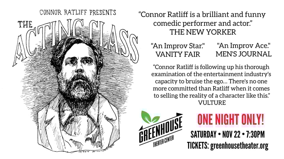 On Saturday, 11/22, at 7:30pm, CONNOR RATLIFF presents THE ACTING CLASS will be performed at the Greenhouse Theater Center in Chicago, for ONE NIGHT ONLY!