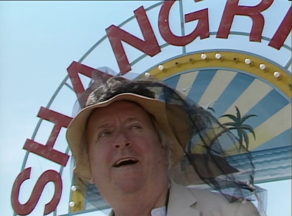 That sincerity is important in other ways too. Ray (Rachel Griffiths) considered as a future companion, but then passed over in favour of Sophie Aldred’s more contemporary Ace, is sweet and subtle, and it’s her performance’s lack of side, its unblinking honesty, that enables that. This is true also of Richard Davies’ Burton Burton, the camp leader at Shangri-La. One of the things the Cartmel era is very, very good at is surprising but authentic feeling character moments, and we have a great example here as, when arguing in front of the Doctor, Burton and Ray slip into Welsh in their anxiety to be understood by each other.