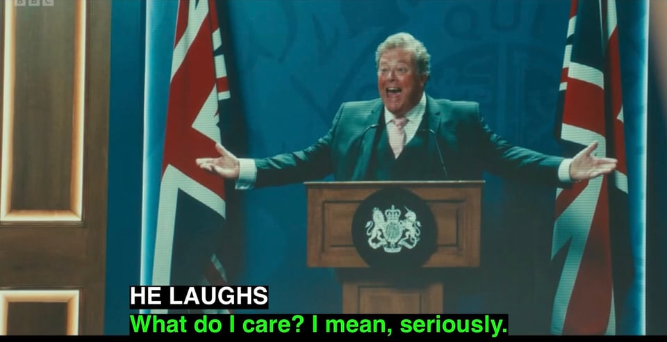 Although Liz Truss' premiership will be a grim punchline for much of a century, it could have been worse for her. If the parliamentary Conservative Party had got its act together a whole 48 hours earlier, she'd have become the first UK Prime Minister since Harold MacMillan to have no Doctor Who transmitted during her ministry; and even MacMillan had some Doctor Who made during his premiership. With production of The Power of the Doctor being more or less completed a whole year before transmission, Truss didn't even manage that. Even David Tennant's surprise cameo was shot during the long exit of her predecessor. She sneaks above Major due to the number of minutes in her single episode, and even then PAL speed up makes it ambiguous. Which is probably the only even vaguely positive achievement of her time in office and, of course, nothing to do with her at all.