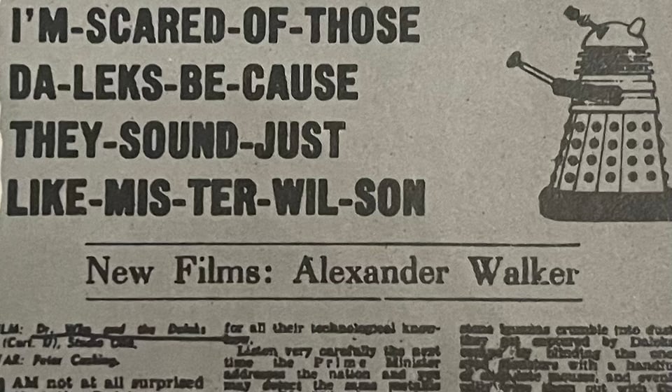 Home’s brief premiership of just under a year saw the transmission of what we now think of as the first series of Doctor Who, 42 episodes from An Unearthly Child to Prisoners of Conciergerie, including the first bout of "Dalekmania". A few years later film critic Alexander Walker would claim that the Daleks sounded like Home’s successor Harold Wilson. Whether he also saw parallels between Home’s benevolent Victorian patriarch act and William Hartnell’s remains unknown.