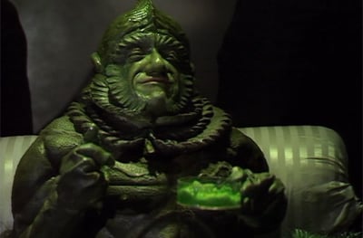 Oddly, the Trial conceit, which allows for cutting back to the Doctor in the courtroom, and seeing him anguished and protesting, allows the audience, and indeed actor Colin Baker, some respite from the Doctor's extreme behaviour. Which The Twin Dilemma doesn't. But the Doctor's treachery still leaves a hole where the protagonist of the adventure on Thoros Beta should be. Or would, if the story didn't have a ready made alternative to hand: King Yrcanos of the Krontep.