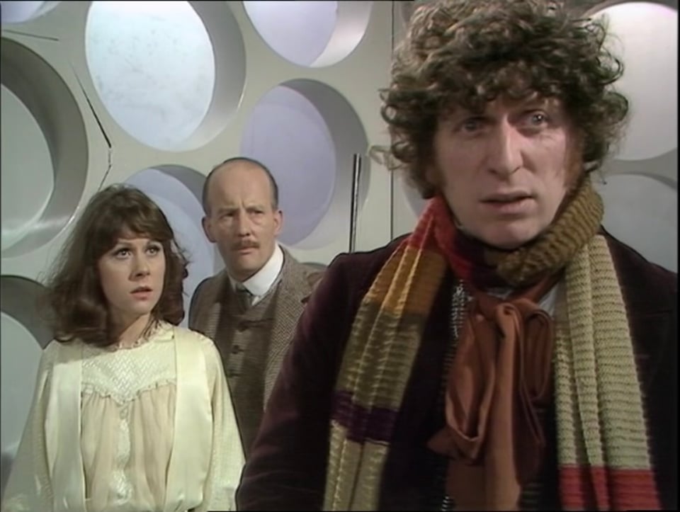 It’s a brilliant sequence, easy to dismiss as padding[^1], but also answering a key question a certain kind of viewer might have.1 Watching it on VHS as a child I found it, if not exactly frightening, then shocking and haunting, and it seemed more relevant than it should have done; the first dozen of so times I saw it I heard Tom Baker’s muttered line “Nineteen Eighty Sarah, if you want to get off” as “Nineteen Eighty Seven, if you want to get off”.