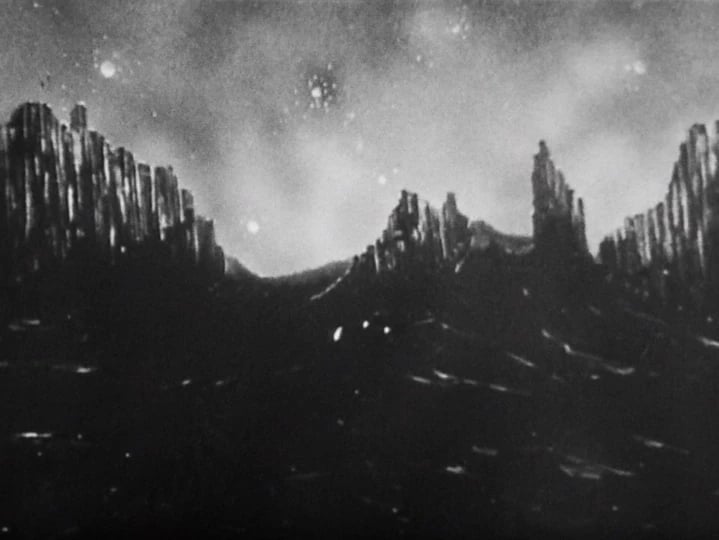 Camfield was a director actors liked, but he also had a strong visual sense, and over and again in this, brilliant Camfield-isms abound. The genuinely beautiful matte shot that’s the only proper look we get at Desperus, craggy mountains visible in half night as torches carried by desperate men bob in the foreground. A genuinely awesome shot of Mavic Chen’s Spar (“space car”) in flight that literally made me gasp when I saw it. There’s superb use of one of BBC drama’s few background on-set screens to give the impression of the Spar in-flight from the inside. We also get another shot of a flashing lightbulb or two. (I told you he liked those a couple of weeks back, right?) Best of all that huge column thing from all the Mission to the Unknown publicity makes a wholly unexpected (at least to me) appearance. Yay.